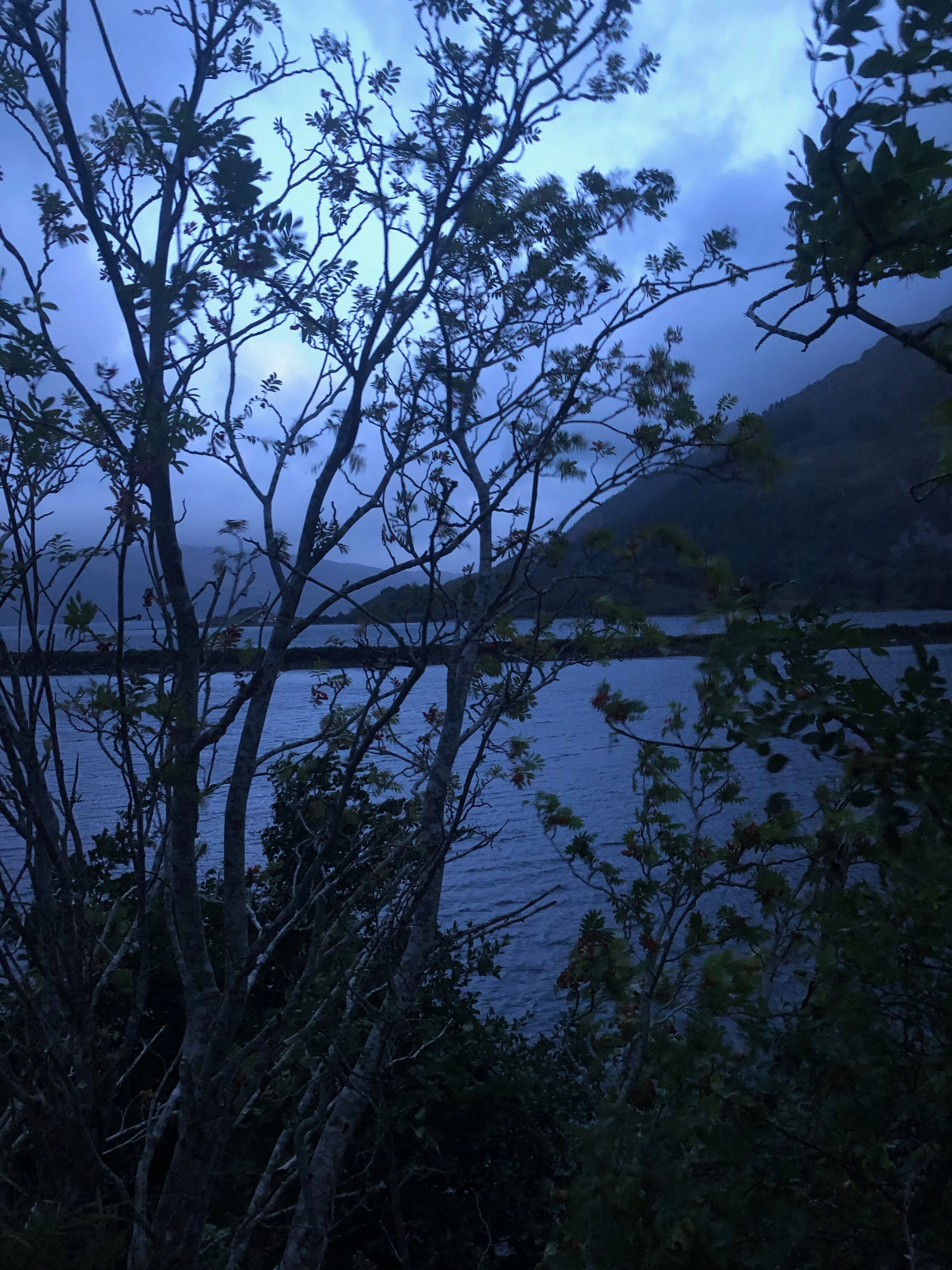 About 3 miles into the trek it began to get dark. The terrain was getting more and more wild and remote, and it was hard going underfoot with most of the trails being rivers or bogs or sometimes both. Our packs were very heavy. We were very tired. We’d been on our feet for about 13 hours at this point, and it was time to put our headtorches on. We could hear deer waking up for a pleasant evening of rutting. There were bats and owls. There was also a massive fuck off hill to get over.